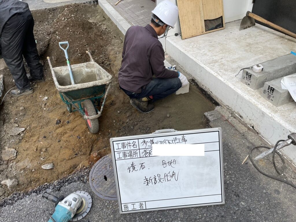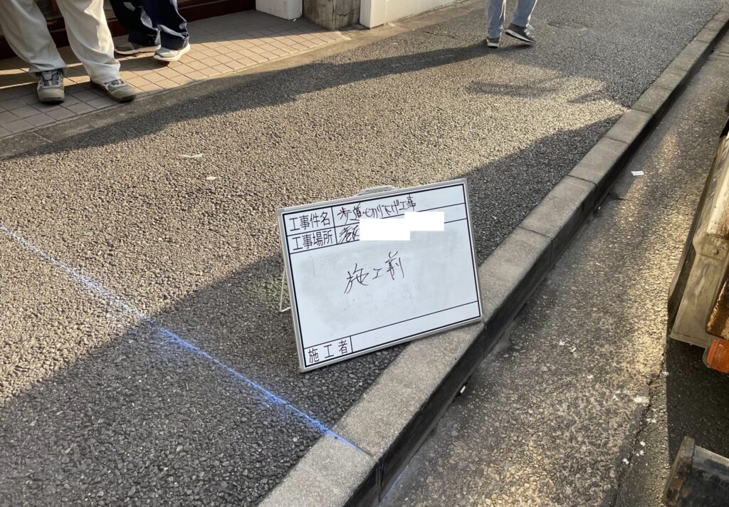 1月23日(木)港区にて歩道切り下げ8本、地先境界石設置・アスファルト舗装8.64㎡の工事にお伺い致しました。