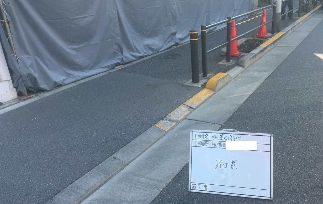9月17日(木)板橋区にて歩車ブロック切り下げ9個、地先境界石設置・アスファルト舗装工事にお伺い致しました。