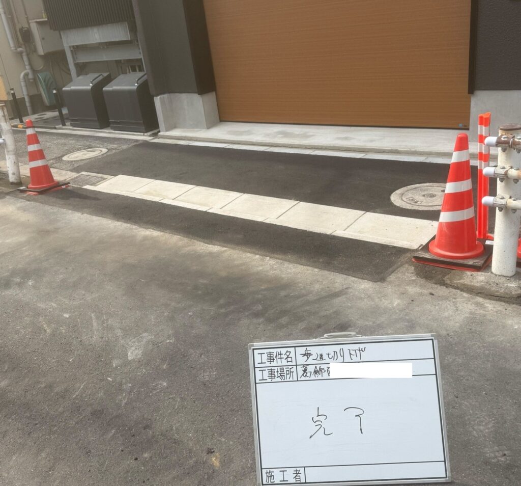 9月18日(金)葛飾区にてL型ブロック切り下げ7個、アスファルト舗装、ガードパイプ撤去、ポストフレックス設置工事にお伺い致しました。