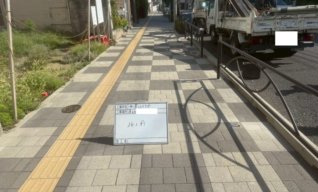 9月25日(木)墨田区にて歩車ブロック6m切り下げ、アスファルト舗装、ガードパイプ撤去、境界ブロック新設工事にお伺い致しました。