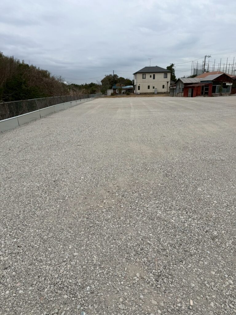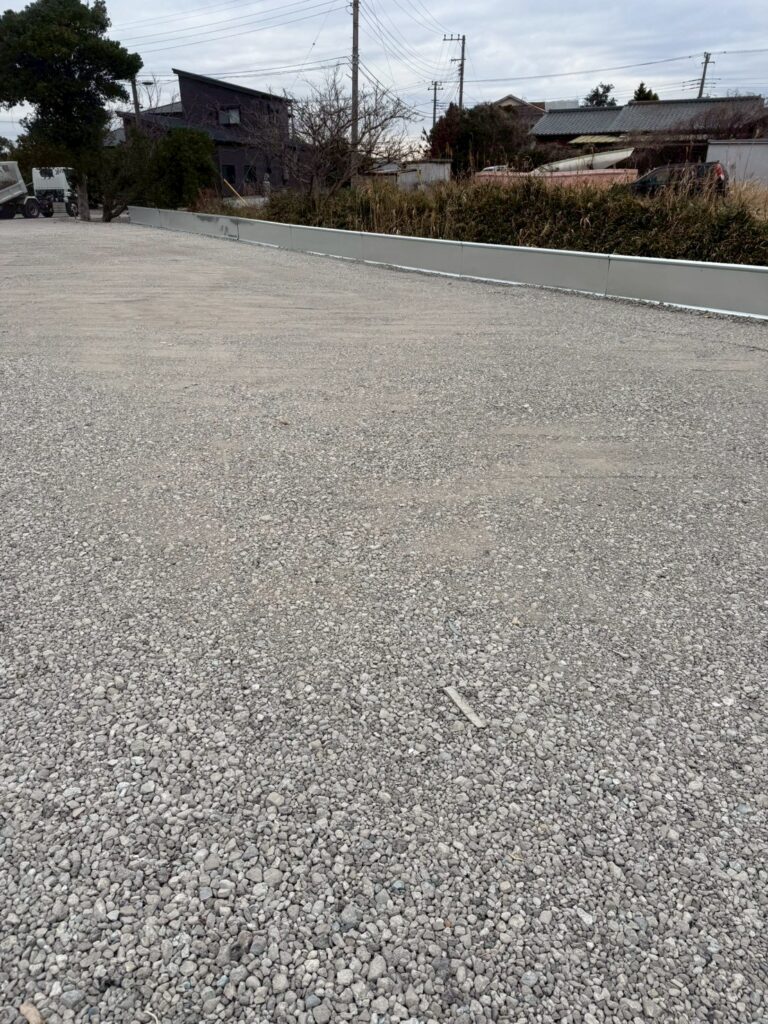 1月28日(水)木更津市にて1900㎡の砕石舗装工事及び72mの土留設置にお伺い致しました。