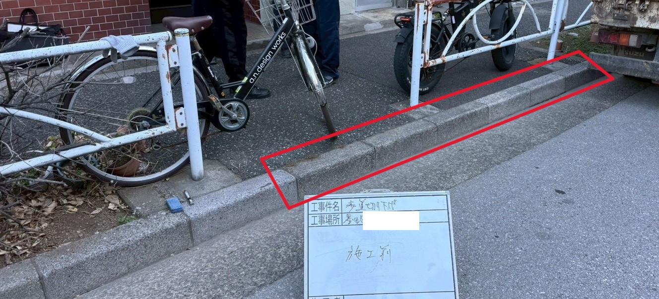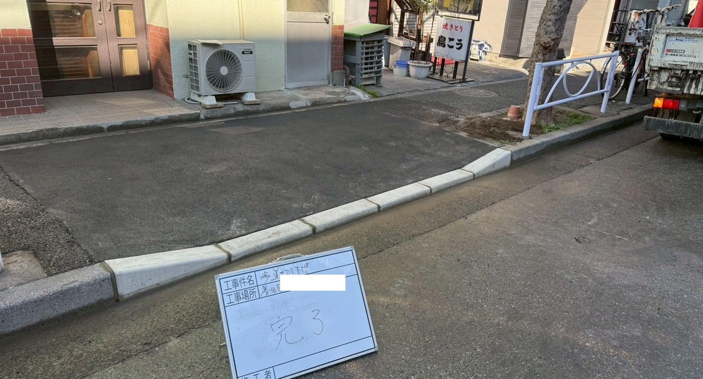 1月29日(木)墨田区にて歩車ブロック切り下げ3.6m・アスファルト舗装7.74㎡の工事にお伺い致しました。