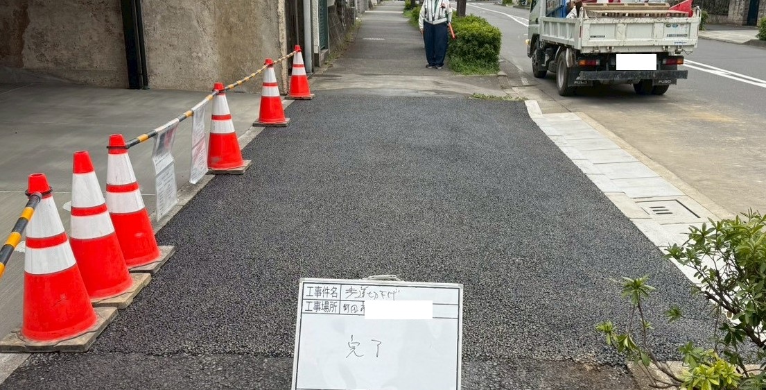3月27日(金)町田市にて歩車ブロック切下げ12個、アスファルト舗装工事にお伺い致しました。